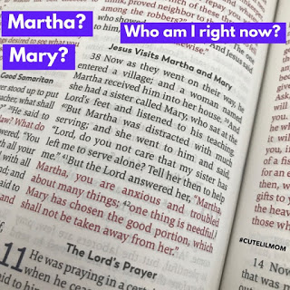 There was a time in my life, way back before marriage and kids, right after college, when I truly felt like Mary. I had more time on my hands, more freedom, my only responsibilities were to take care of myself and my job. I sang in the church choir. I went to multiple bible studies. I served and lead ACTS retreats in my parish. I had a great community with others who were seeking the Lord and I felt so close to Jesus. I even remember when all of my friends were getting married and my closet was full of bridesmaids dresses, saying to the Lord, “Ok, Jesus. I’m watching all of my friends find their love and I’m still waiting. You know what? Why am I concerned? I have YOU. I could not ask for a better man. One more faithful and loving. So, it’s me and You. You are my guy, the love of my life.” Yea, I was Mary all over.