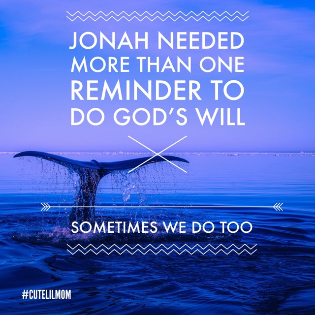 1. I love that Jonah needed more than one reminder to do what he was supposed to do. It makes me feel a bit better about myself and about God. The fact that He stayed true and didn’t give up on Jonah, even though that stubborn man tried to do things his own way, gives me hope. I often try to show the Lord that I have a better plan, because I am not sure that His idea is quite right. Anyone else? Luckily, I haven’t had to deal with aquatic animals to teach me a lesson, but I’ve had my own “Ah… you really mean this, don’t you, Lord?” moments.