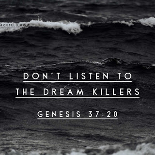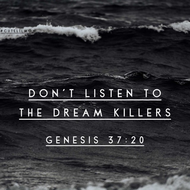 Application time: I’m a dreamer and I’ll bet, so are you. God made us that way. He’s given us dreams and a vision that He wants us to chase and follow, to bring into reality. He’s endowed us with the gifts to make that happen, but, we all have inner and outer voices that want to kill those dreams. Can you think of someone who loves to remind you that you’re not good enough to do that, or thinks that your dream is nonsense and crazy? They may not be that blunt about it. It may be more subtle, but you can just tell that they think you’re wasting your time.