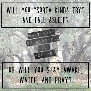 I heard Fr. Mike Schmitz, in a video the other day, talk about being ALL IN as a disciple. That we can’t have a “I’ll sorta kinda try” attitude. Peter, James, and John were asked by Jesus to go with him to the Garden of Gethsemane to pray. He asks them to watch and pray. They say, in Fr. Mike’s words, “I’ll kinda sorta try.” and then fall asleep. This was something big. Something important was happening and they weren’t all in. They were all asleep. All distracted. They missed it and have to live with that.