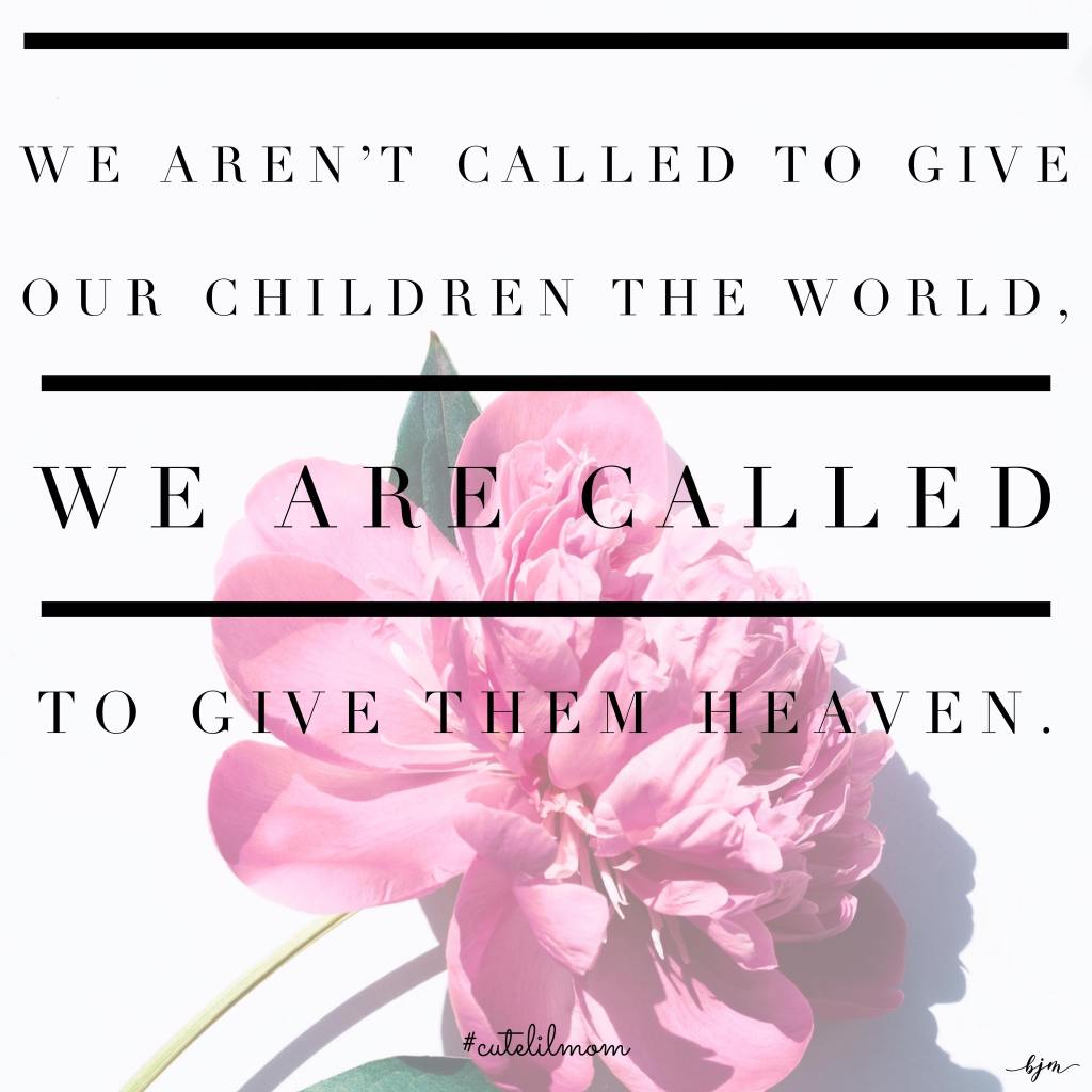 So, rest easy. Focus on what’s important. And don’t let the struggles and craziness that is outside your door stop you from remembering that your job as a mom is to raise your kids to know, love, and serve the Lord. And if they learn that, they will have good values, strong faith, and be good people. It’s okay that you can’t give them the world, but if you point them towards heaven, maybe, just maybe, they will help make this world a better place as they pass through.
